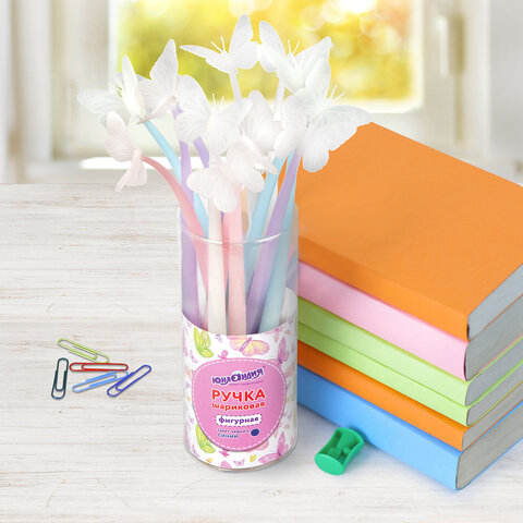 Ручка фигурная шариковая ЮНЛАНДИЯ "Бабочка", силиконовый корпус, ассорти, СИНЯЯ, пишущий узел 0,7 мм, 143795