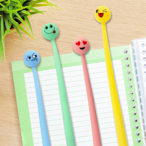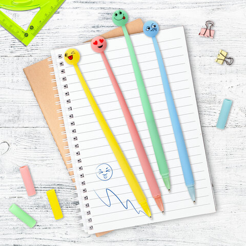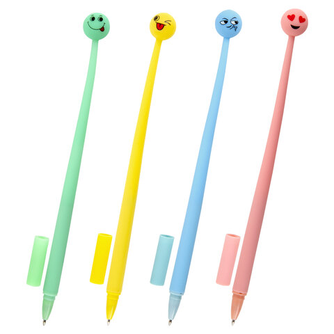 Ручка фигурная шариковая ЮНЛАНДИЯ "Смайлик", силиконовый корпус, ассорти, СИНЯЯ, пишущий узел 0,7 мм, 143793