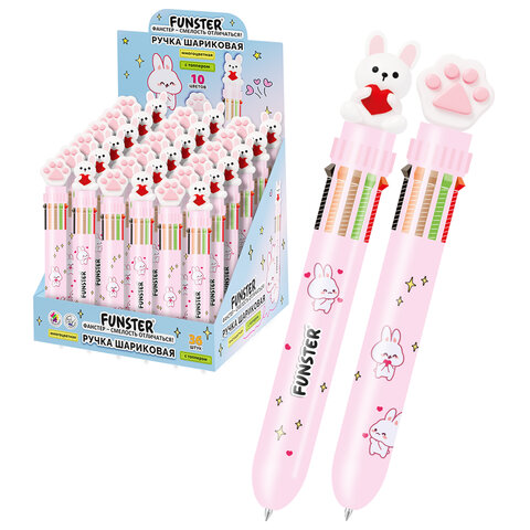 Ручка многоцветная с топпером шариковая автоматическая 10 ЦВЕТОВ FUNSTER (ФАНСТЕР) "WOW", ассорти, узел 0,7 мм, линия 0,35 мм, 144382
