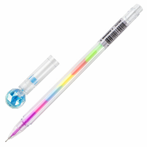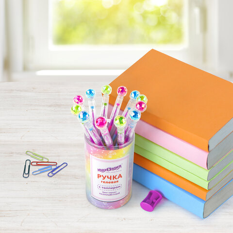 Ручка с топпером гелевая ЮНЛАНДИЯ "Хрустальный шар", ассорти, РАДУЖНЫЕ чернила, игольчатый пишущий узел 0,7 мм, 143785