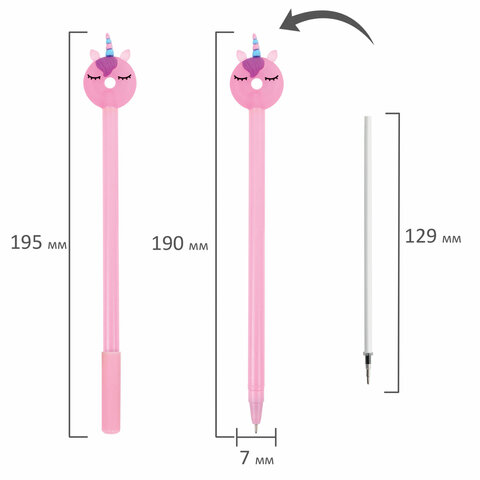 Шариковая ручка масляная ЮНЛАНДИЯ "Единорог-пончик" с милой игрушкой на корпусе.