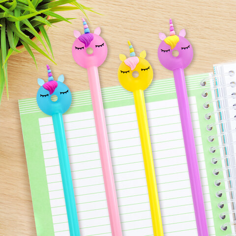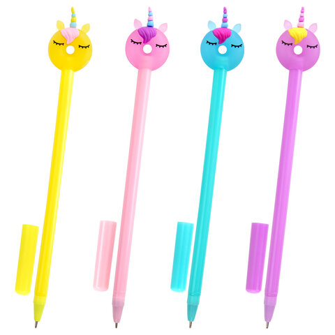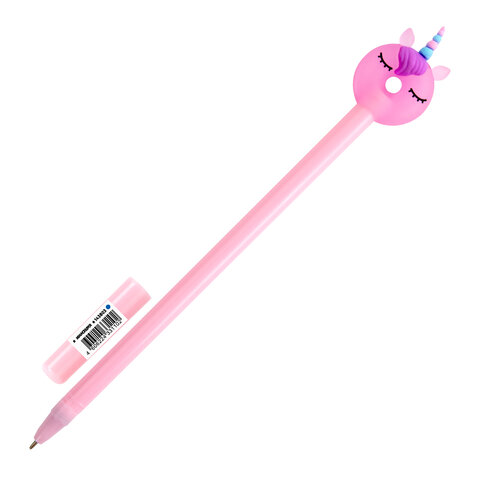 Ручка с топпером шариковая ЮНЛАНДИЯ "Единорог-пончик", корпус ассорти, СИНЯЯ, пишущий узел 0,7 мм, 143803