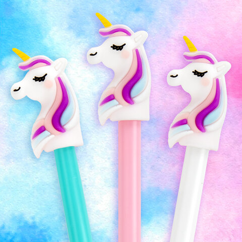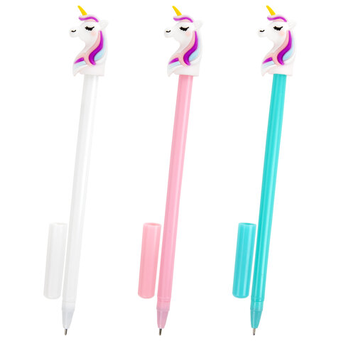 Ручка с топпером шариковая ЮНЛАНДИЯ "Единорожка", корпус ассорти, СИНЯЯ, пишущий узел 0,7 мм, 143806