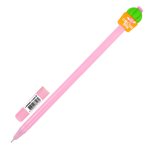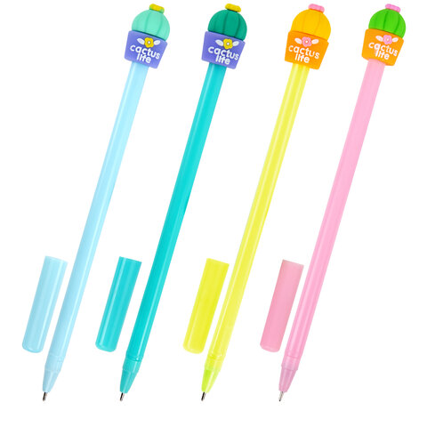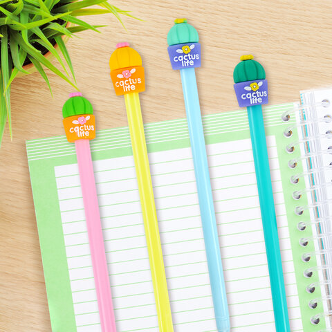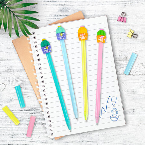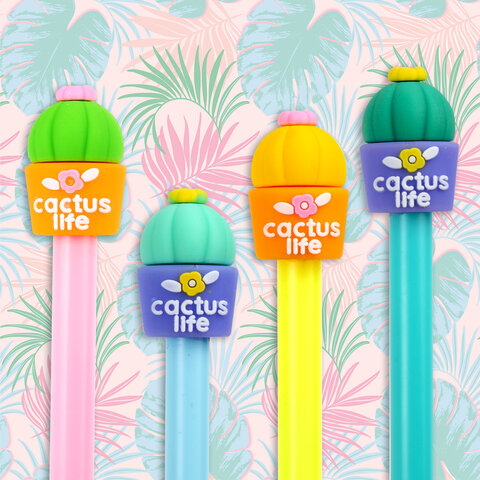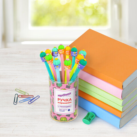 Ручка с топпером шариковая ЮНЛАНДИЯ "Кактус", корпус ассорти, СИНЯЯ, пишущий узел 0,7 мм, 143800