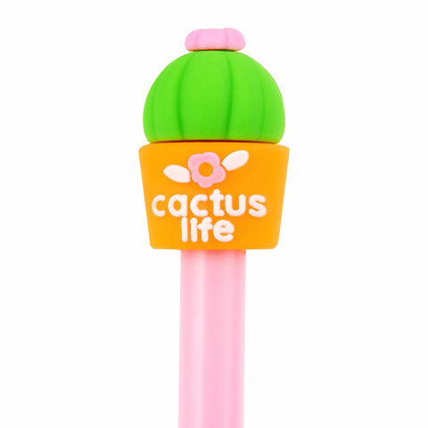 Шариковая ручка масляная ЮНЛАНДИЯ "Кактус" с милой игрушкой на корпусе.