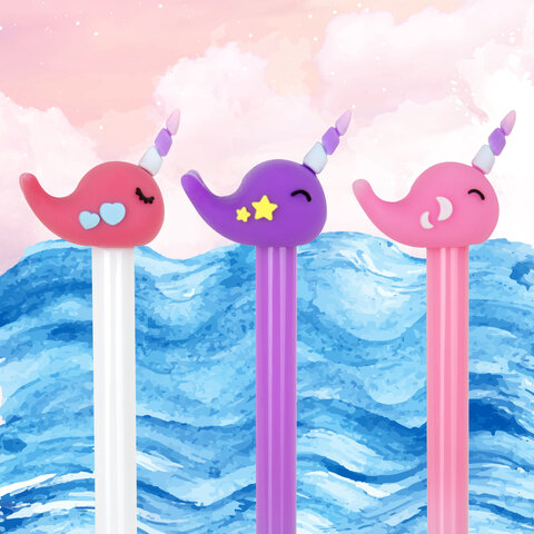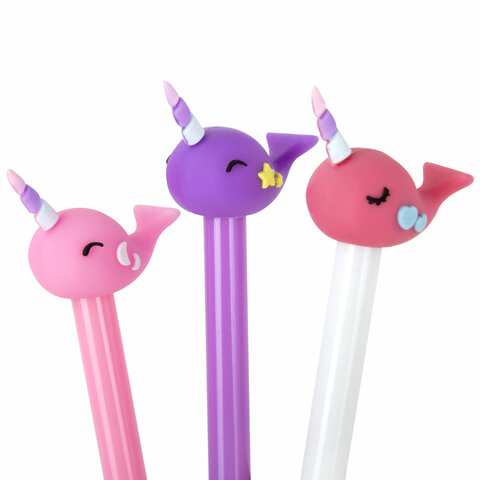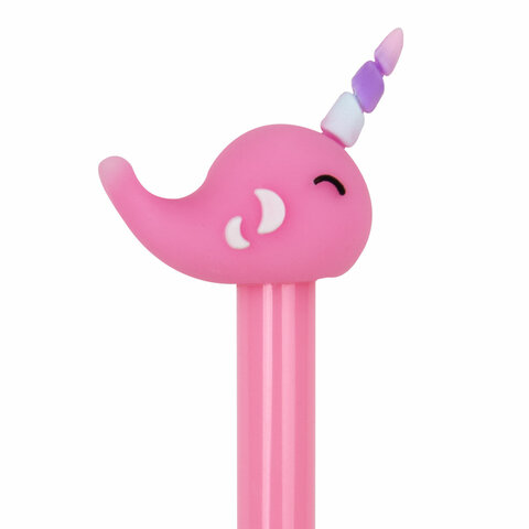 Шариковая ручка ЮНЛАНДИЯ "Кит-Единорог" с милой игрушкой на корпусе.