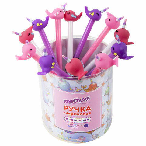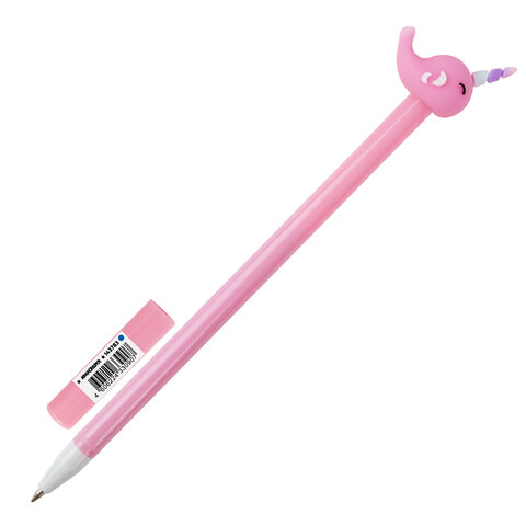 Ручка с топпером шариковая ЮНЛАНДИЯ "Кит-Единорог", корпус ассорти, СИНЯЯ, пишущий узел 0,7 мм, 143783