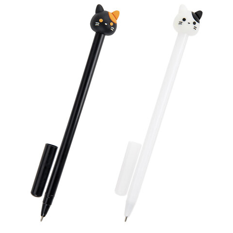 Шариковая ручка масляная ЮНЛАНДИЯ "Кошка" с милой игрушкой на корпусе.