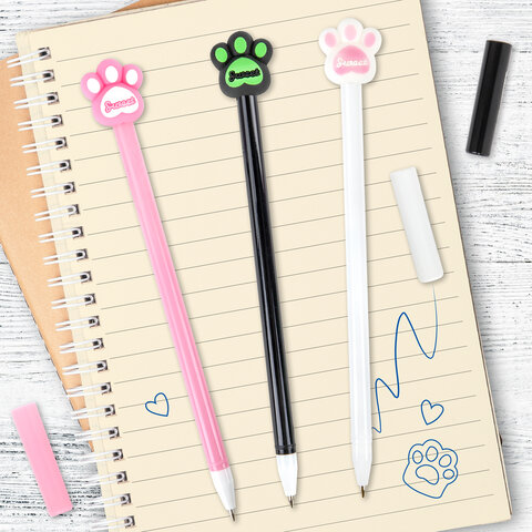 Ручка с топпером шариковая ЮНЛАНДИЯ "Лапка", корпус ассорти, СИНЯЯ, пишущий узел 0,7 мм, 143784