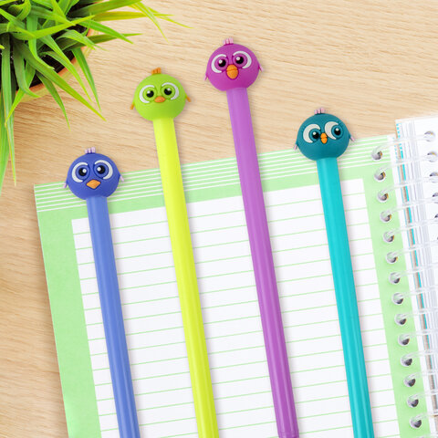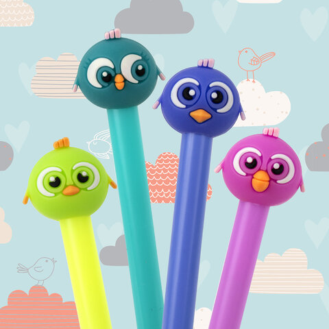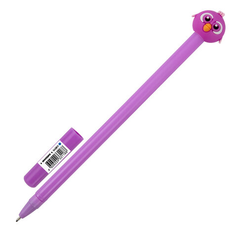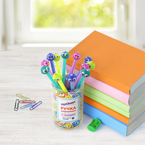 Ручка с топпером шариковая ЮНЛАНДИЯ "Птенец", корпус ассорти, СИНЯЯ, пишущий узел 0,7 мм, 143811