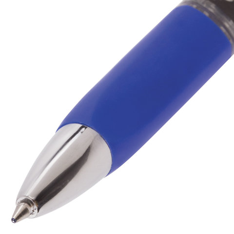 Ручка гелевая автоматическая с грипом BRAUBERG "Black Jack", СИНЯЯ, трехгранная, узел 0,7 мм, линия письма 0,5 мм, 141551