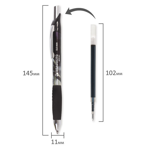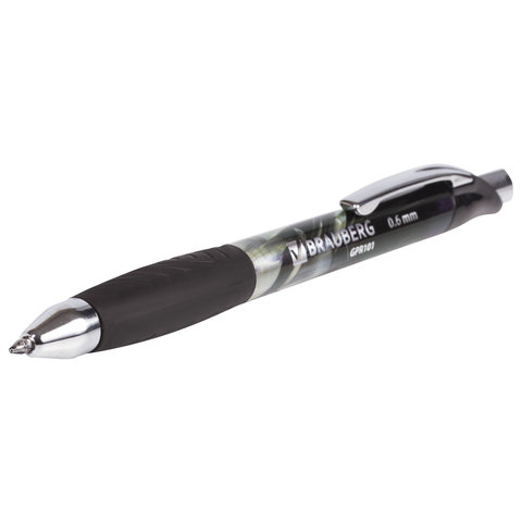 Ручка гелевая автоматическая с грипом BRAUBERG "Jet Gel", ЧЕРНАЯ, печать, узел 0,6 мм, линия письма 0,4 мм, 142691