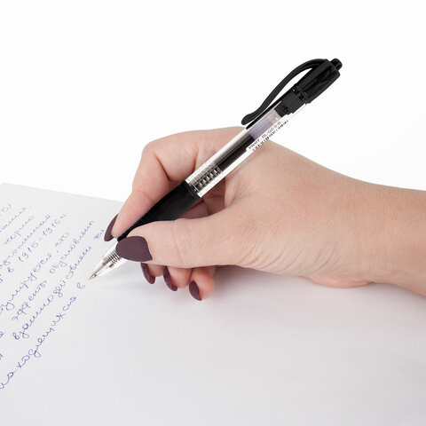 Автоматическая гелевая ручка с резиновым упором для пальцев.