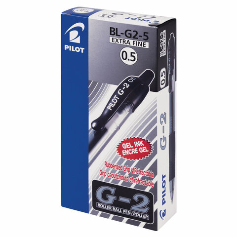 Ручка гелевая автоматическая с грипом PILOT G-2, ЧЕРНАЯ, корпус прозрачный, узел 0,5 мм, линия письма 0,25 мм, BL-G2-5