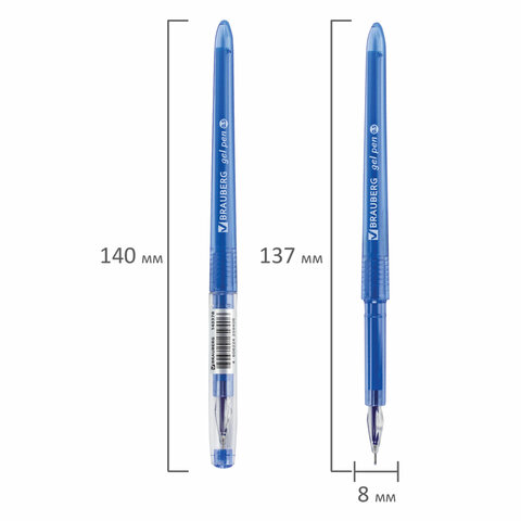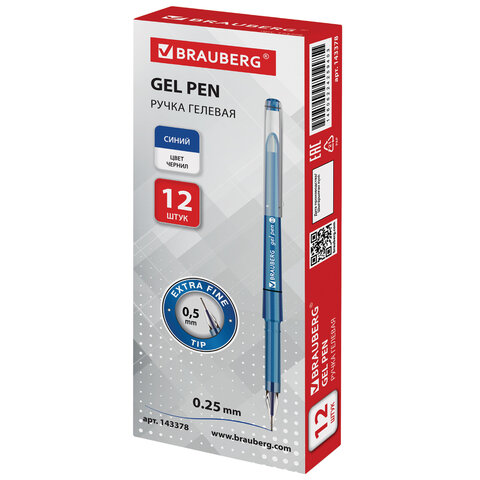 Ручка гелевая BRAUBERG DIAMOND, СИНЯЯ, игольчатый узел 0,5 мм, линия письма 0,25 мм, 143378.