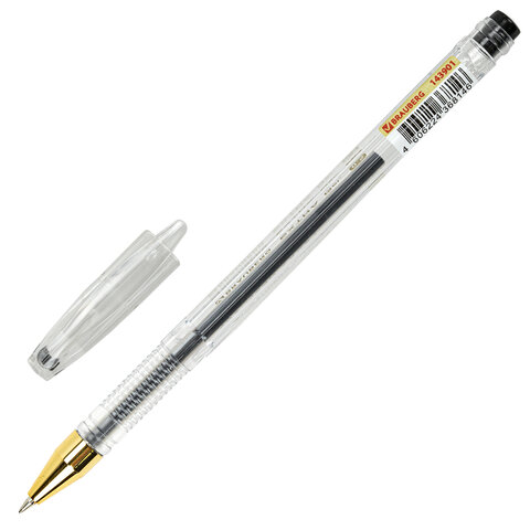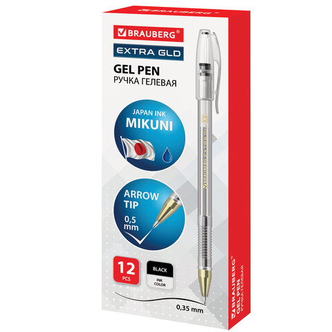 Ручка гелевая BRAUBERG "EXTRA GLD", ЧЕРНАЯ, корпус прозрачный, узел 0,5 мм, линия 0,35 мм, 143901