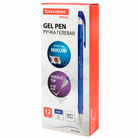 Ручка гелевая BRAUBERG SPECIAL, СИНЯЯ, игольчатый узел 0,38 мм, тонкая линия письма 0,2 мм, 144245