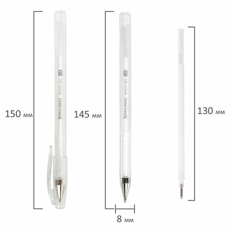 Гелевая ручка BRAUBERG "White Pastel" с белым цветом чернил идеально подходит для создания рисунков на черной бумаге и станет отличным помощником в реализации творческих замыслов.