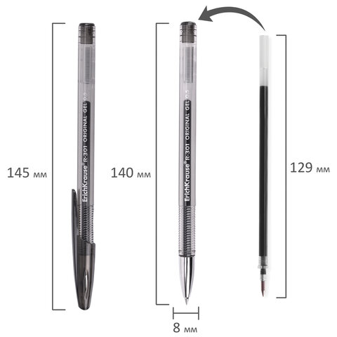 Гелевая ручка ERICH KRAUSE "R-301" имеет полупрозрачный круглый корпус насыщенных цветов с удобной зоной захвата с рифлением и вентилируемый колпачок.