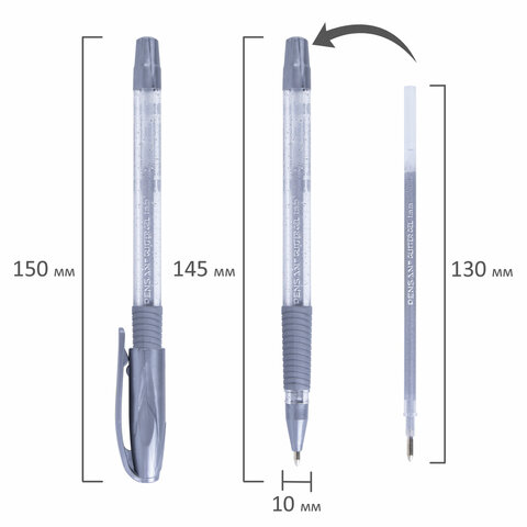 Ручка PENSAN Glitter Gel поставляется в корпусе круглой формы из прозрачного пластика с блестками и деталями в цвет чернил.Зона захвата снабжена резиновым грипом, обеспечивающим комфорт кисти при письме и позволяющим не прикладывать дополнительных усилий.