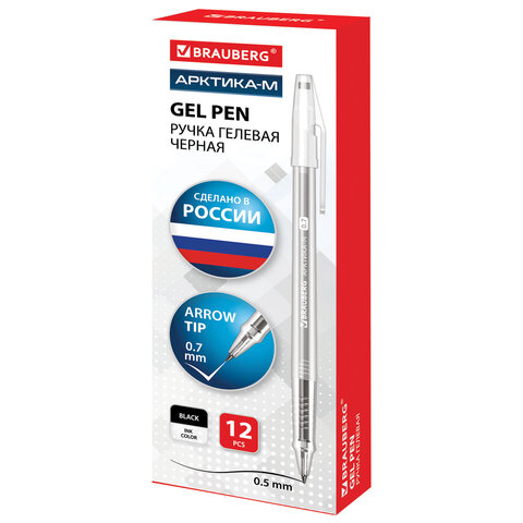 Ручка гелевая РОССИЯ "СТАНДАРТ", ЧЕРНАЯ, корпус тонированный, узел 0,7 мм, линия письма 0,5 мм, BRAUBERG, 143958