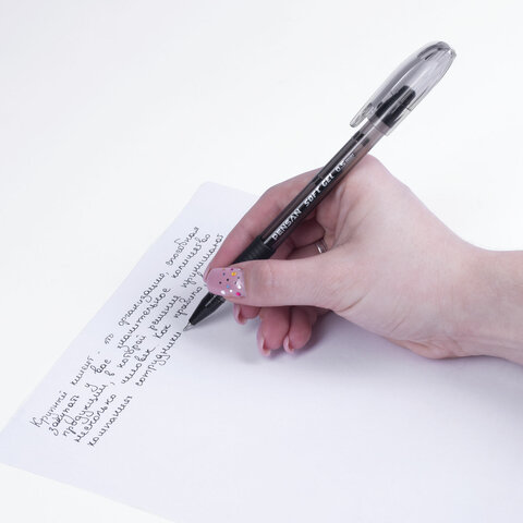 Ручка гелевая с грипом PENSAN "Soft Gel Fine", ЧЕРНАЯ, игольчатый узел 0,5 мм, линия 0,4 мм, 2420/12
