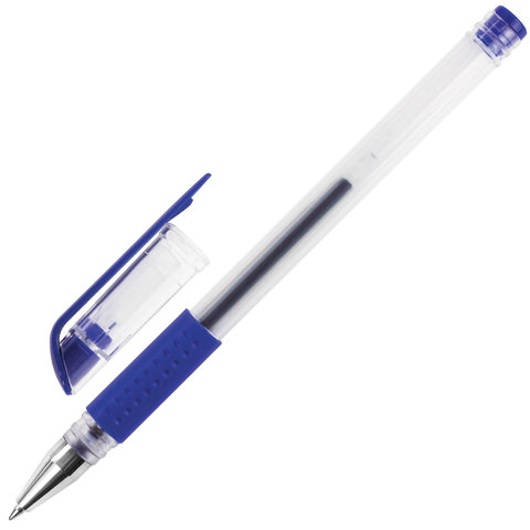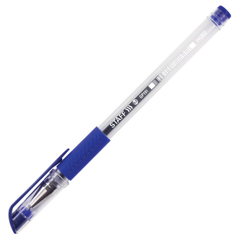 Ручка гелевая с грипом STAFF "EVERYDAY" GP-191, СИНЯЯ, корпус прозрачный, узел 0,5 мм, линия письма 0,35 мм, 141822