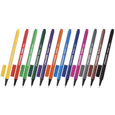 Набор капиллярных ручек (линеров) BRAUBERG 12 шт., АССОРТИ, "Aero", трехгранные, металлический наконечник, линия письма 0,4 мм, 141525