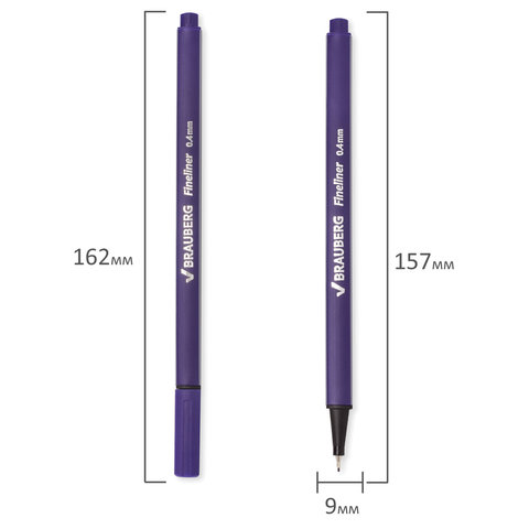 Ручка капиллярная (линер) BRAUBERG "Aero", ФИОЛЕТОВАЯ, трехгранная, металлический наконечник, линия письма 0,4 мм, 142255