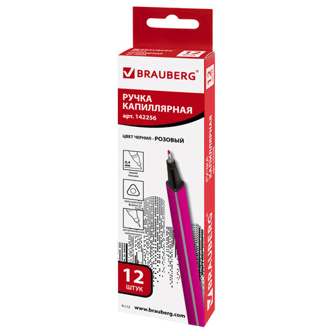 Ручка капиллярная (линер) BRAUBERG "Aero", РОЗОВАЯ, трехгранная, металлический наконечник, линия письма 0,4 мм, 142256