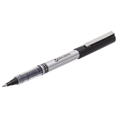 Ручка-роллер BRAUBERG "Flagman", ЧЕРНАЯ, корпус серебристый, хромированные детали, узел 0,5 мм, линия письма 0,3 мм, 141555