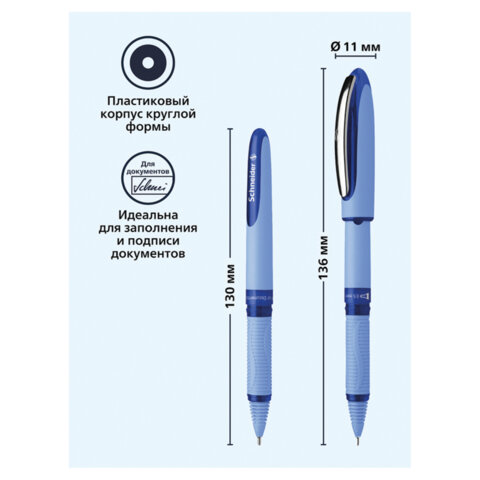 Ручка-роллер SCHNEIDER (Германия) "One Hybrid N", СИНЯЯ, корпус голубой, узел 0,7 мм, линия 0,5 мм, 183503