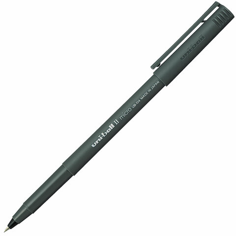 Ручка-роллер Uni-Ball II Micro, ЧЕРНАЯ, корпус черный, узел 0,5 мм, линия 0,24 мм, UB-104 Black