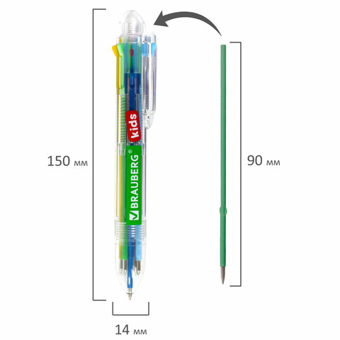 Автоматическая шариковая ручка BRAUBERG KIDS умеет писать 8 цветами! Станет незаменимым помощником в учёбе и работе.