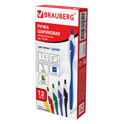 Ручка шариковая автоматическая BRAUBERG "Caribbean", СИНЯЯ, корпус ассорти, узел 0,7 мм, линия письма 0,35 мм, 141159