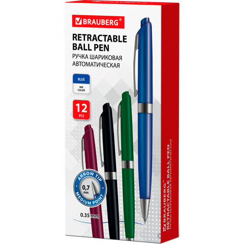 Ручка шариковая автоматическая BRAUBERG "Diplomat", СИНЯЯ, корпус ассорти, узел 0,7 мм, линия письма 0,35 мм, 141007