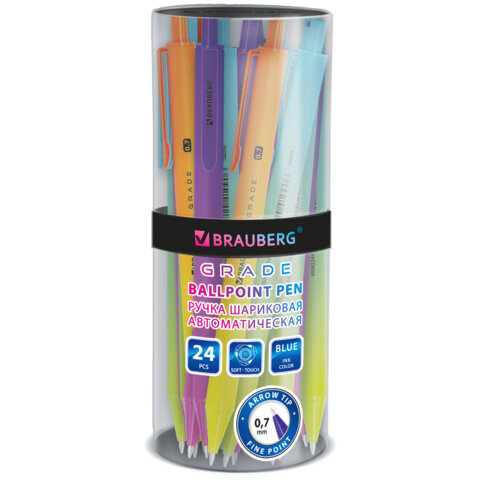 Ручка шариковая автоматическая BRAUBERG "Grade", корпус soft-touch, СИНЯЯ, пишущий узел 0,7 мм, линия письма 0,35 мм, 144205