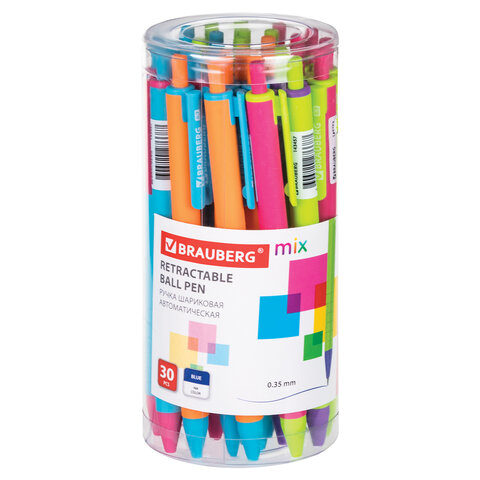 Ручка шариковая автоматическая BRAUBERG "MIX", СИНЯЯ, корпус ассорти, узел 0,7 мм, линия письма 0,35 мм, 143457