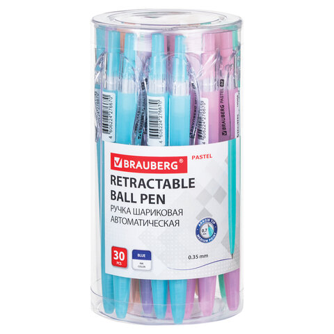 Ручка шариковая автоматическая BRAUBERG "PASTEL", СИНЯЯ, корпус ассорти, 0,7 мм, линия письма 0,35 мм, 143456