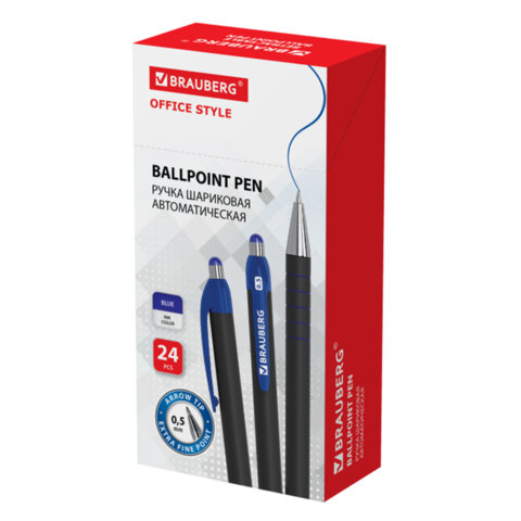 Ручка шариковая автоматическая BRAUBERG "Office Style", СИНЯЯ, корпус черный, пишущий узел 0,5 мм, линия письма 0,3 мм, 144222