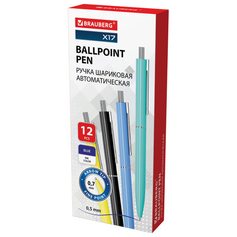 Классическая автоматическая шариковая ручка BRAUBERG X17 COLOR – яркий и функциональный инструмент для работы и учебы.