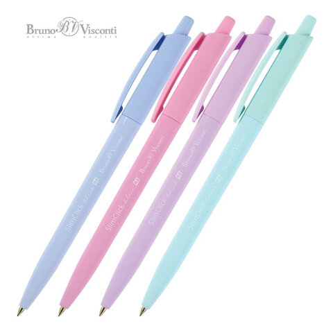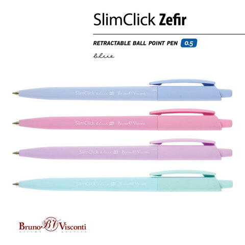 Ручка шариковая автоматическая BRUNO VISCONTI "SlimClick", "Zefir", СИНЯЯ, ассорти, узел 0,5 мм, линия письма 0,3 мм, 20-0229