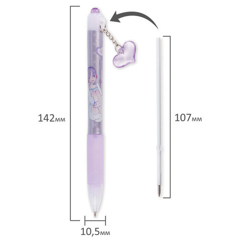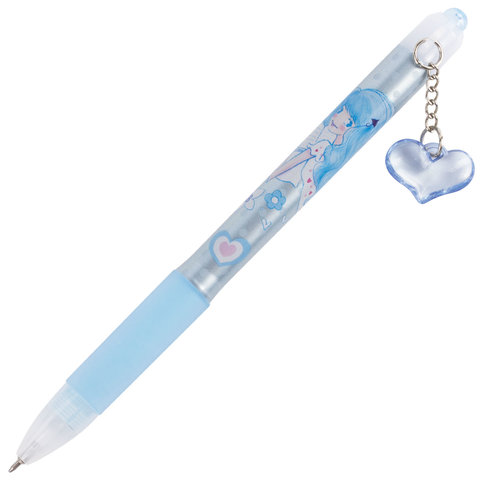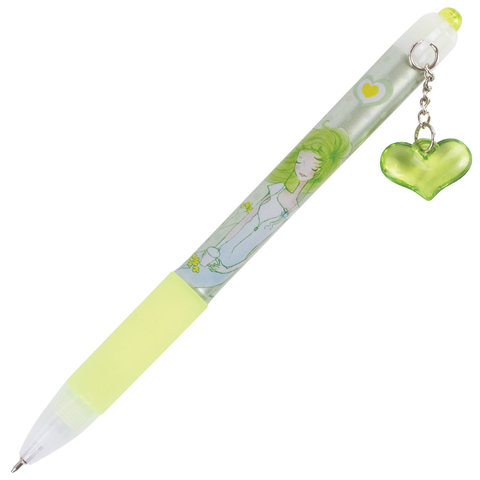 Ручка шариковая автоматическая с грипом BRAUBERG "First Love", СИНЯЯ, подвеска, корпус ассорти, узел 0,5 мм, линия письма 0,3 мм, 141285