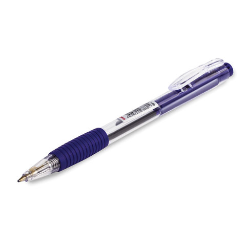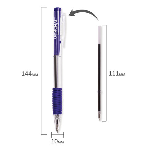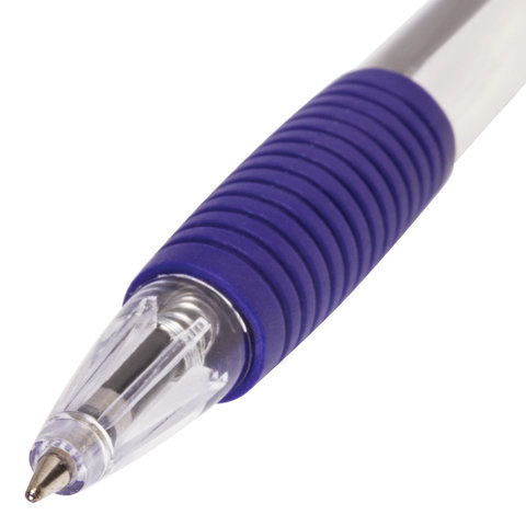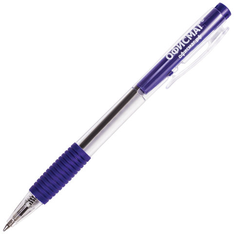 Ручка шариковая автоматическая с грипом ОФИСМАГ, СИНЯЯ, корпус прозрачный, узел 0,7 мм, линия письма 0,35 мм, 141294