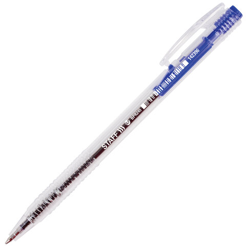Ручка шариковая автоматическая STAFF "Basic" BPR-245, СИНЯЯ, корпус прозрачный, 0,7 мм, линия письма 0,35 мм, 142396