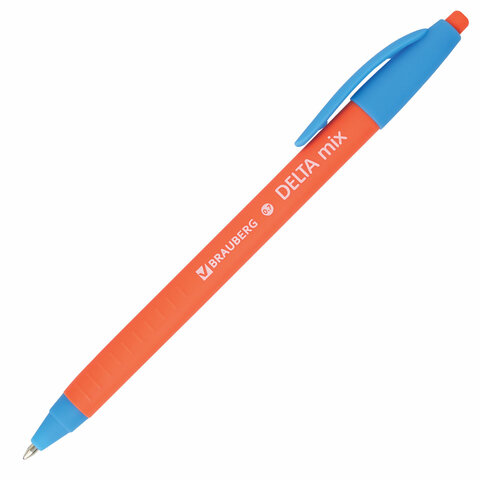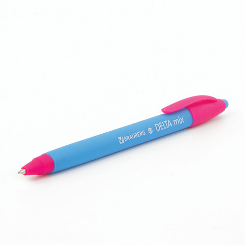 Ручка шариковая масляная автоматическая BRAUBERG "Delta Mix", СИНЯЯ, корпус soft-touch ассорти, узел 0,7 мм, линия письма 0,35 мм, 143340, OBPR366