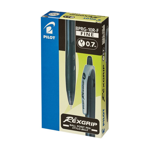 Ручка шариковая масляная автоматическая PILOT "Rex Grip", узел 0,7 мм, линия 0,22 мм, упор, черная, BPRG-10R-F B