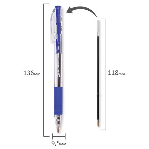 Шариковая масляная автоматическая ручка с грипом BRAUBERG "Click" - идеально подойдет для работы и учебы.