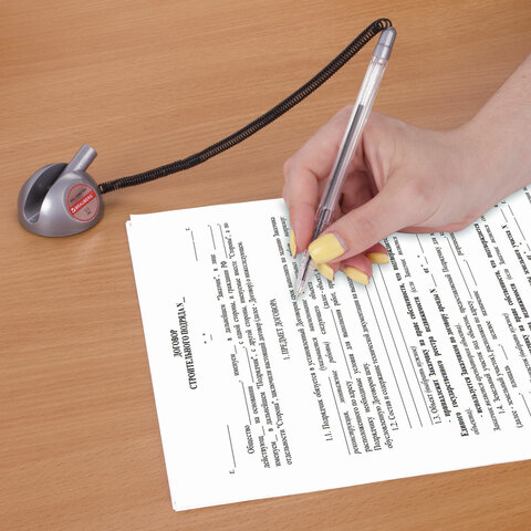 Настольная шариковая ручка BRAUBERG "Counter Pen" со стандартным типом пишущего узла и заменяемым стержнем. Специальная подставка с липким основанием обеспечивает надежное крепление на столе.