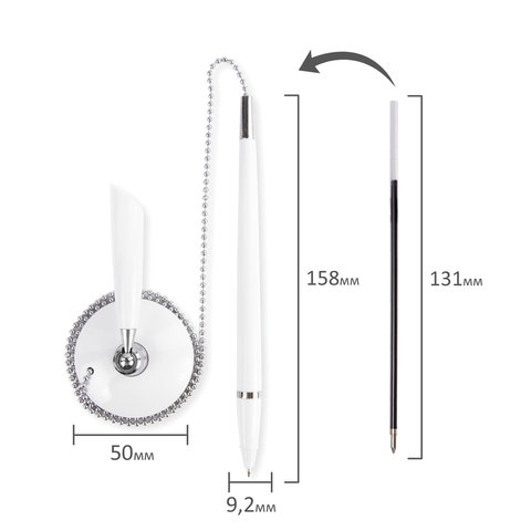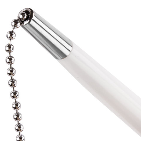 Ручка шариковая настольная BRAUBERG "Стенд-Пен Уайт1", СИНЯЯ, цепочка, корпус белый, линия письма 0,5 мм, 141044
